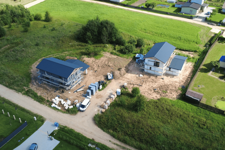 Objekto ir aplinkos kadrai iš viršaus. Paslauga apima ne tik filmavimą bei fotografavimą, bet ir objekto būklės apžiūrą, 2D/3D sklypo vizualizaciją su ribų pažymėjimu bei teritorijos pristatymu.